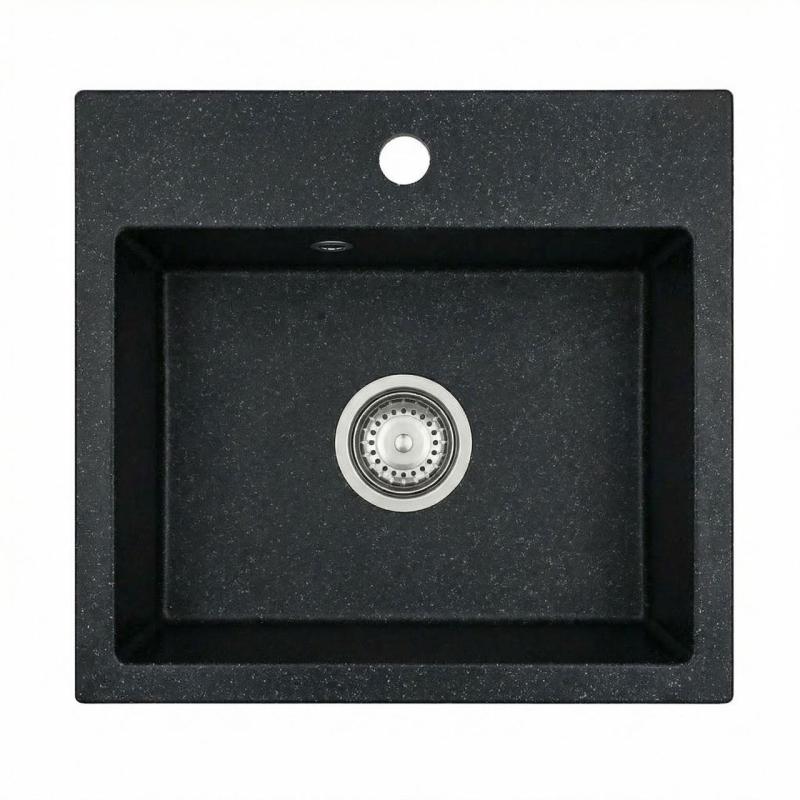 Гранителенд Нера Гранитна мивка 45x42 см Външен вид на твърд камък Монтаж с отвор за смесител и неръждаема стомана Пробка 1208971432