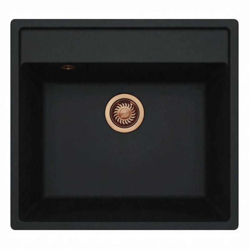 GraniteMy Bremen Granite Sink 53x50 cm Black – Topmount, Undermount and Flushmount with Tap Hole and Copper Plug 1208969970