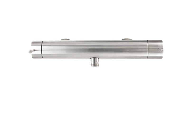 Кранът е изработен от масивен месинг и е с устойчиво хромирано покритие. Това осигурява луксозен блясък, отлична устойчивост на корозия и дълготрайна надеждност. Благодарение на термостатичния механизъм, зададената температура остава стабилна, дори при променящо се налягане на водата.