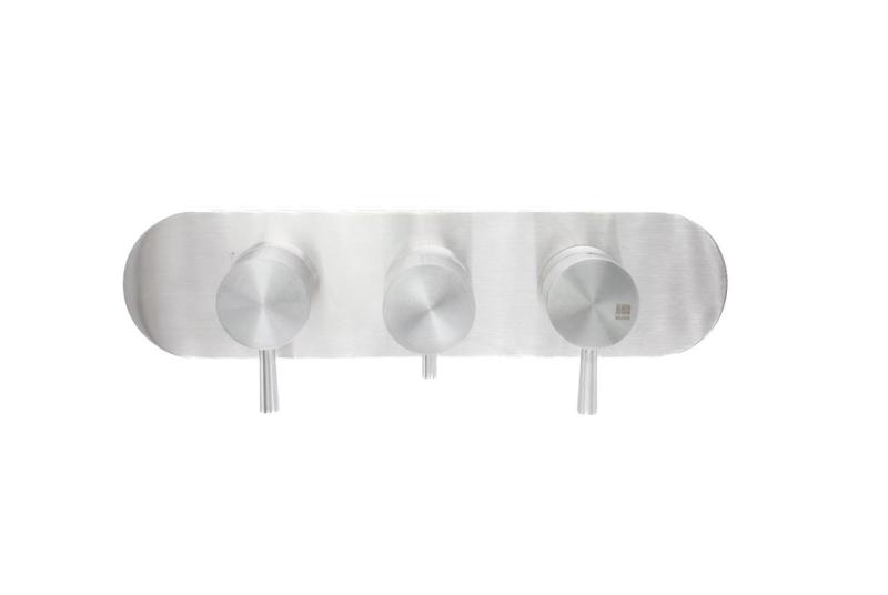 С два отделни спирателни крана можете да управлявате свързаните водни изходи независимо един от друг, като например главен душ и ръчен душ. Това осигурява оптимална гъвкавост и контрол върху комфорта и потреблението на вода. Управлението се извършва чрез елегантни дръжки, а квадратната розетка с размери 80 x 80 mm осигурява изчистена, модерна стена.