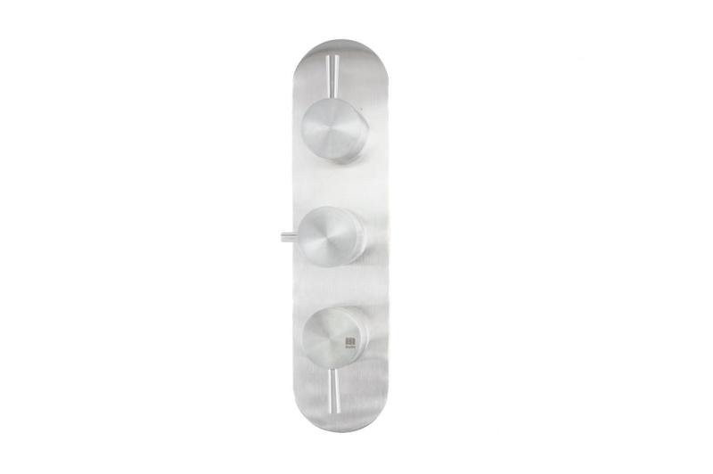 С два отделни спирателни крана можете да управлявате независимо свързаните изходи за вода, като например главен душ и ръчен душ. Това осигурява оптимална гъвкавост и контрол върху комфорта и потреблението на вода. Управлението се извършва чрез елегантни дръжки, а включените в комплекта розетки осигуряват чист и минималистичен завършек на стената.