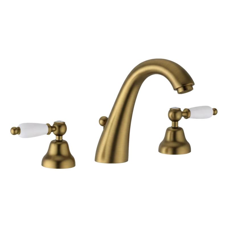 PB класически месингов смесител с 3 отвора за висок мивка Бели дръжки Бронз 1208956910